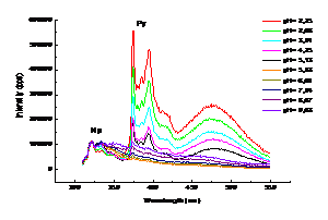 Figure 2013-1. Non-radiative energy transfer between Np and PAA-Py in micellar AOT–PAA-Py systems at different pH values.